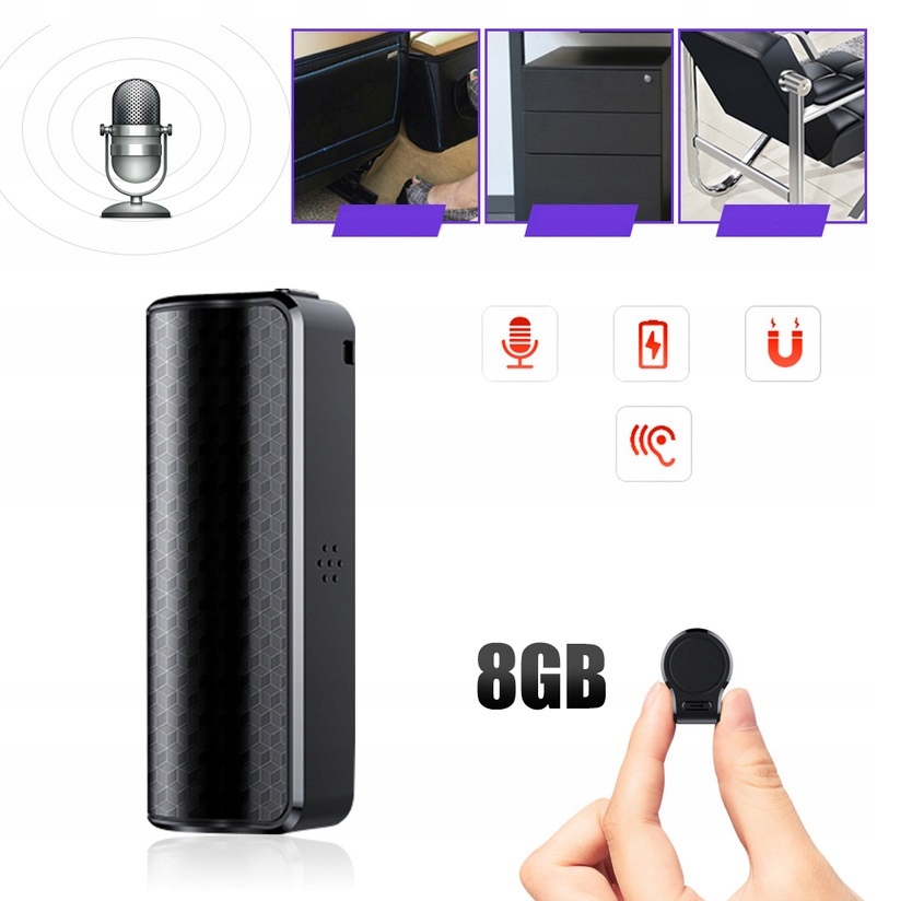 Oferujemy na sprzedaż fabrycznie nowy,bardzo dobrej jakości MINIATUROWY DYKTAFON 8GB Z NAJDŁUŻSZYM CZASEM PRACY, TRWAJĄCYM NAWET DO 25 DNI.