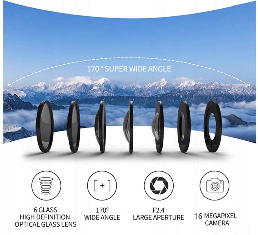 Podczas oglądania poczujesz dreszcz emocji, a Twoi znajomi będą mogli uzyskać realny wgląd w daną sytuację dzięki szerokiemu kątowi widzenia kamery sięgającemu 170 stopni. Kamera jest w stanie uchwycić wszystkie elementy znajdujące się w znacznej odległości od środka obiektywu, co znacznie polepsza jakość wszystkich filmików.