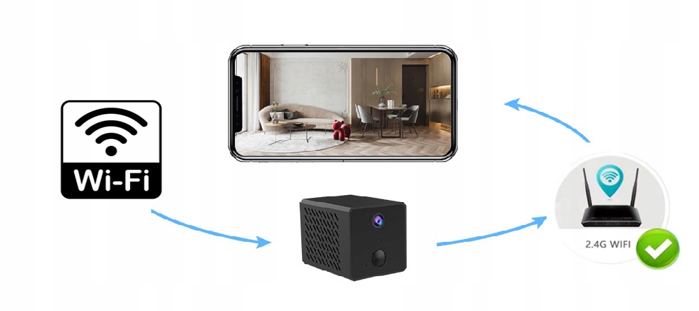 Kamera umożliwia podgląd zdalny na telefon, tablet oraz komputer. Wymogiem do podglądu z dowolnego miejsca jest zasięg sieci Wi-Fi 2,4 GHz w miejscu instalacji kamery. Zdalny monitoring jeszcze nigdy nie był tak łatwy i prosty do ukrycia.